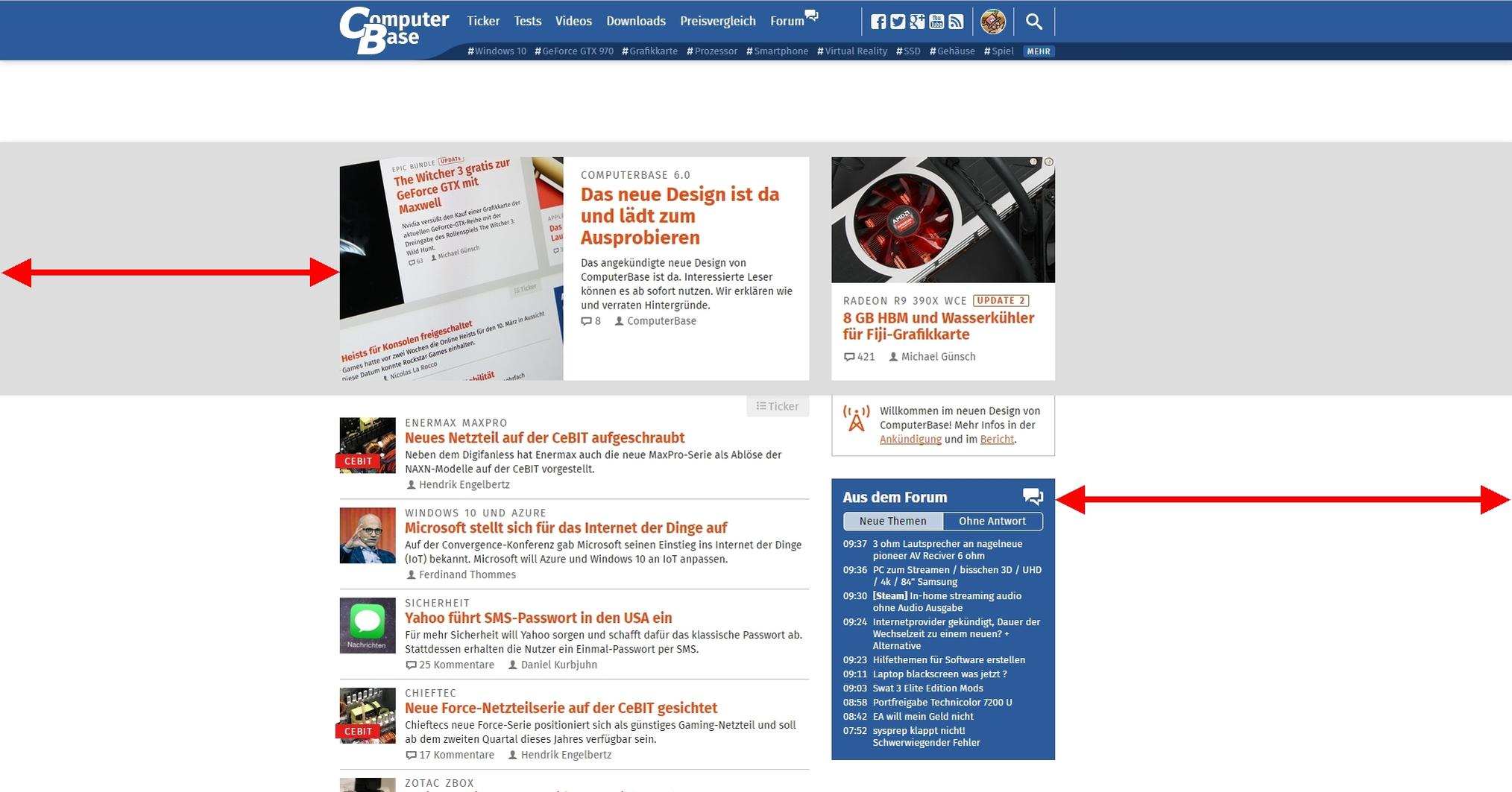 Klar oben, links und rechts ist Platz für Werbung eingeplant, aber die totale Platzverschwendung ...