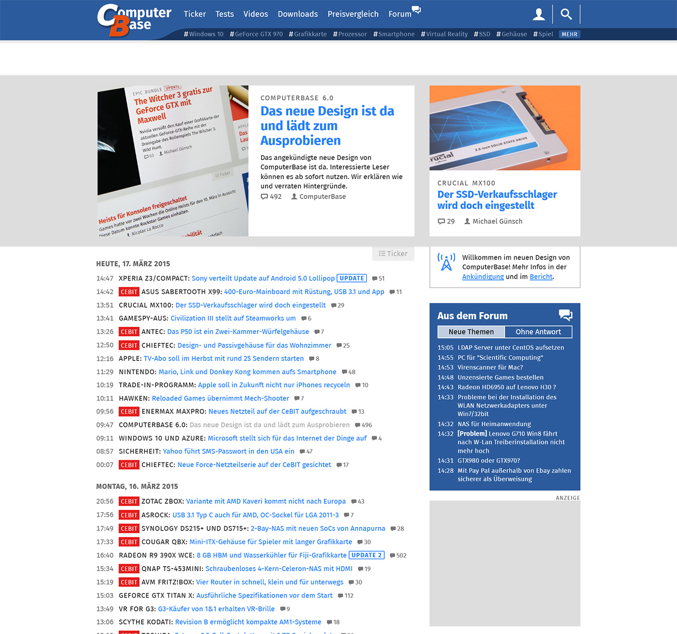 Das blau macht CB aus, weshalb mich auch dort nur das Forenmenü stört. Das Forum ist übrigens ein gutes Argument für die Tickeransicht in blau.