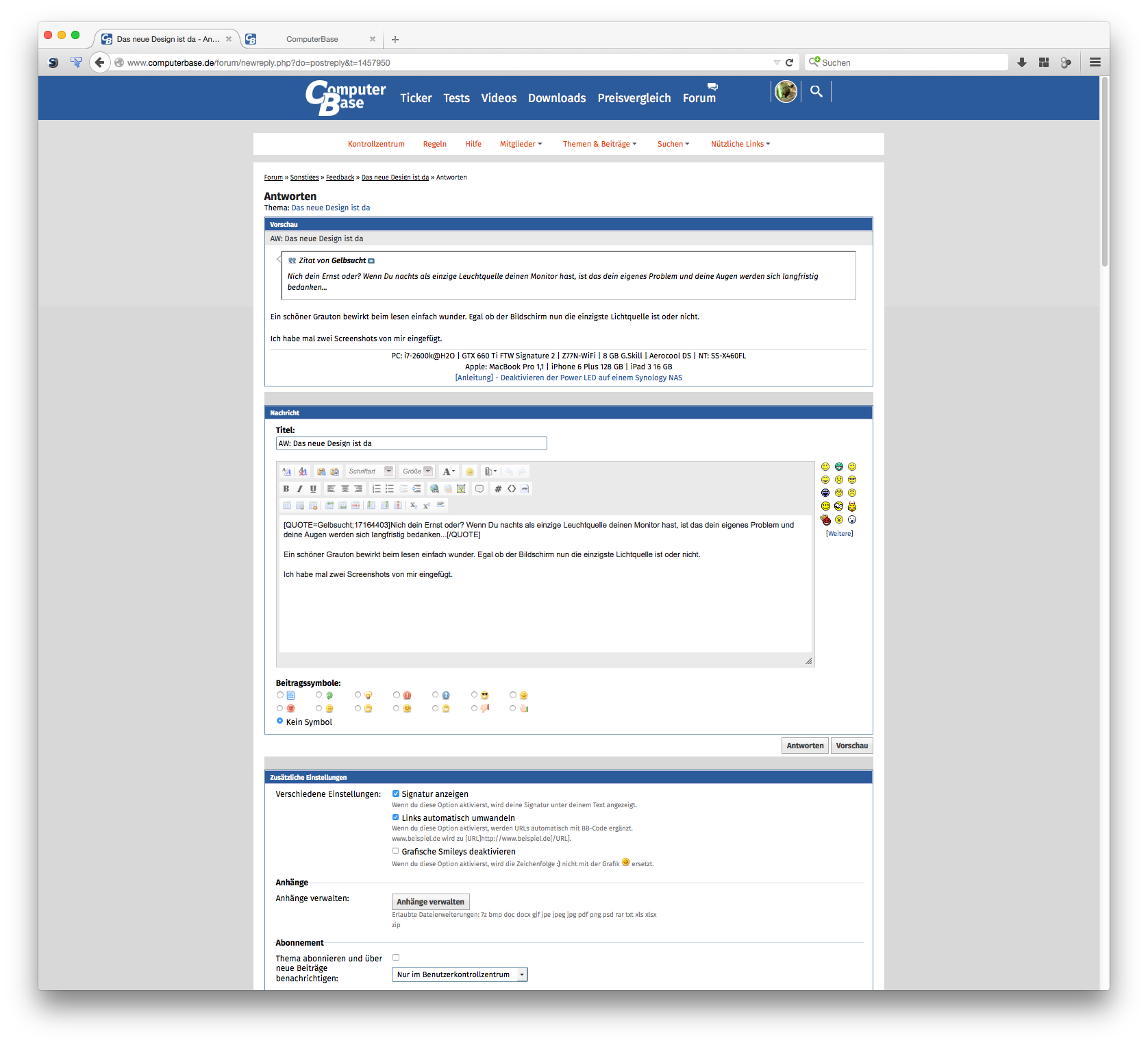 - mir würde es reichen, wenn man das Forum-Layout einmal im Kontrollzentrum einstellen könnte