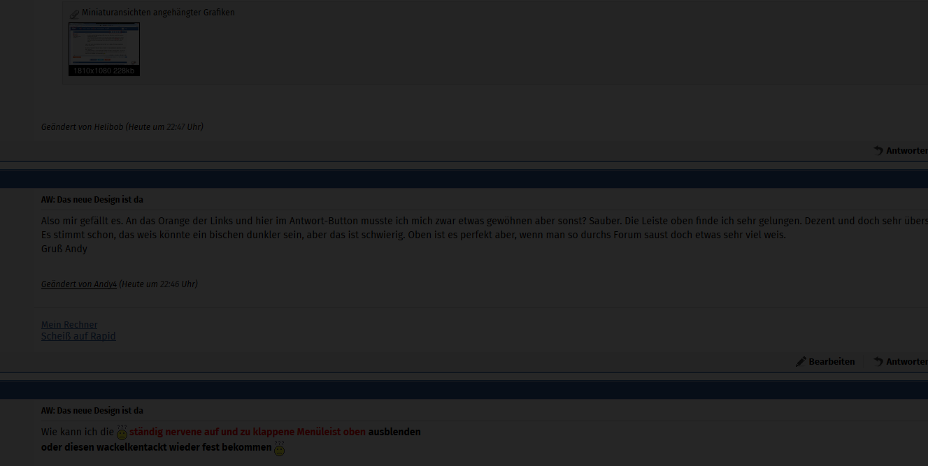 Bester Kommentar bisher, dem kann ich mich nur ausnahmslos anschließen. Ich bin ja doch immer wieder erstaunt wie konservativ man in einem Technik-Forum sein kann. Mr gefällt das neue Design und ich habe alles wiedergefunden was CB ausmacht. Wenn mir dennoch etwas auffällt, was evtl. geändert werden könnte, werde ich es hier posten.