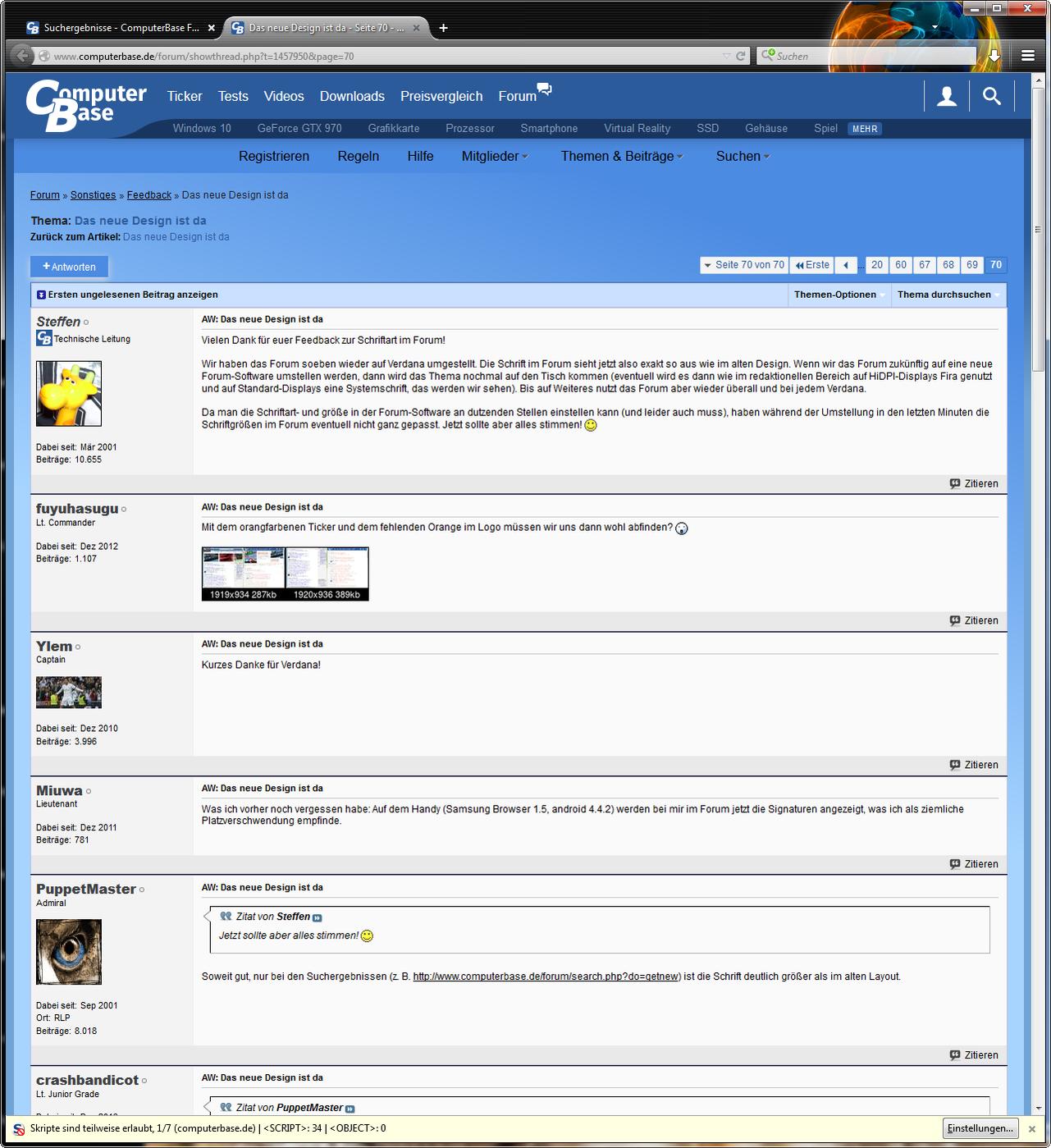 Wir haben das Forum soeben wieder auf Verdana umgestellt. Die Schrift im Forum sieht jetzt also exakt so aus wie im alten Design. Wenn wir das Forum zukünftig auf eine neue Forum-Software umstellen werden, dann wird das Thema nochmal auf den Tisch kommen (eventuell wird es dann wie im redaktionellen Bereich auf HiDPI-Displays Fira genutzt und auf Standard-Displays eine Systemschrift, das werden wir sehen). Bis auf Weiteres nutzt das Forum aber wieder überall und bei jedem Verdana.