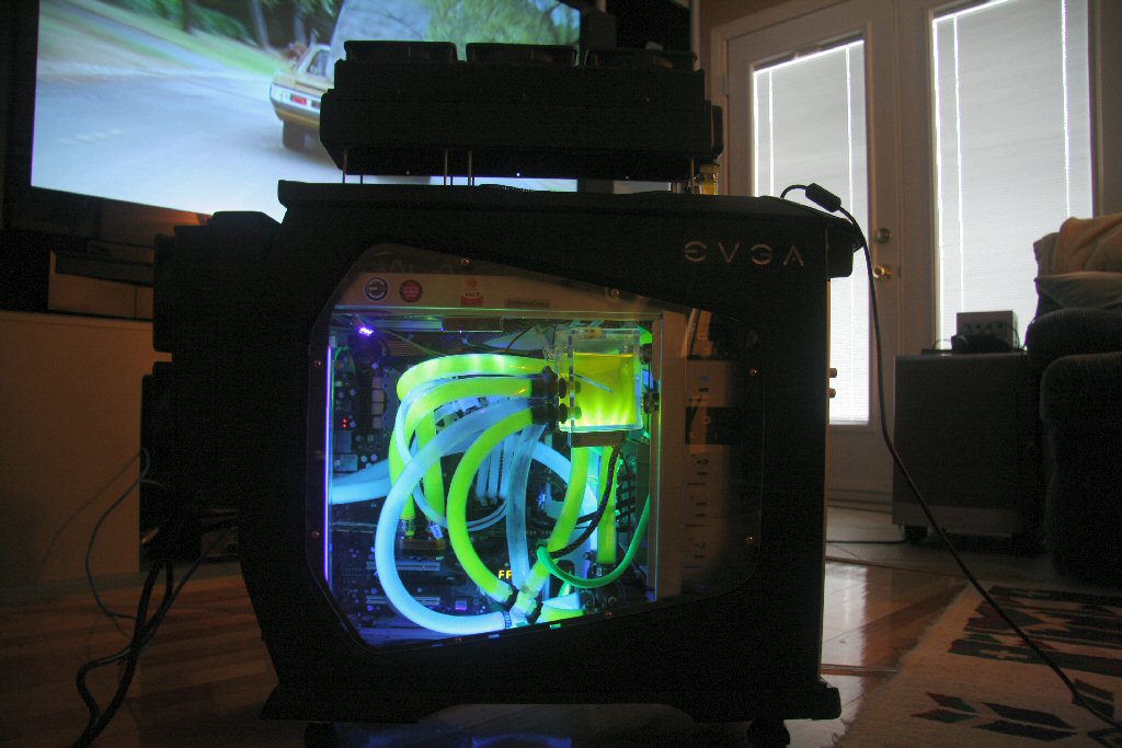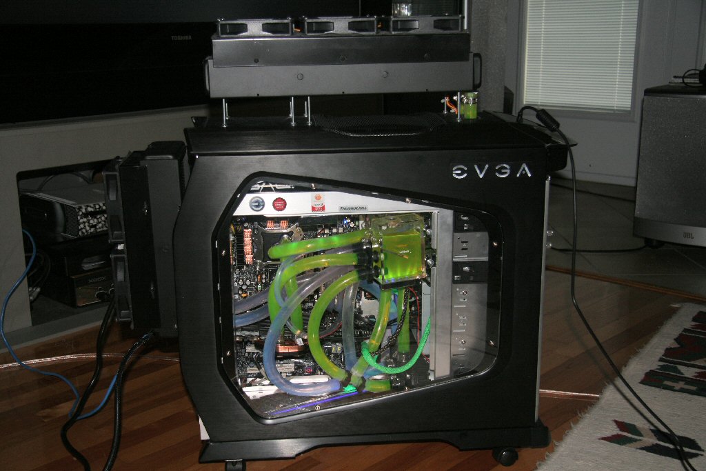 Ich bin auf der Suche nach einem neuem Gehäuse für meinen PC, da das Antec P180 nicht genug Platz für meine Wakü bietet und der Radiator deshalb "semi"-extern montiert ist ( Radi ist aussen, Lüfter innen ).