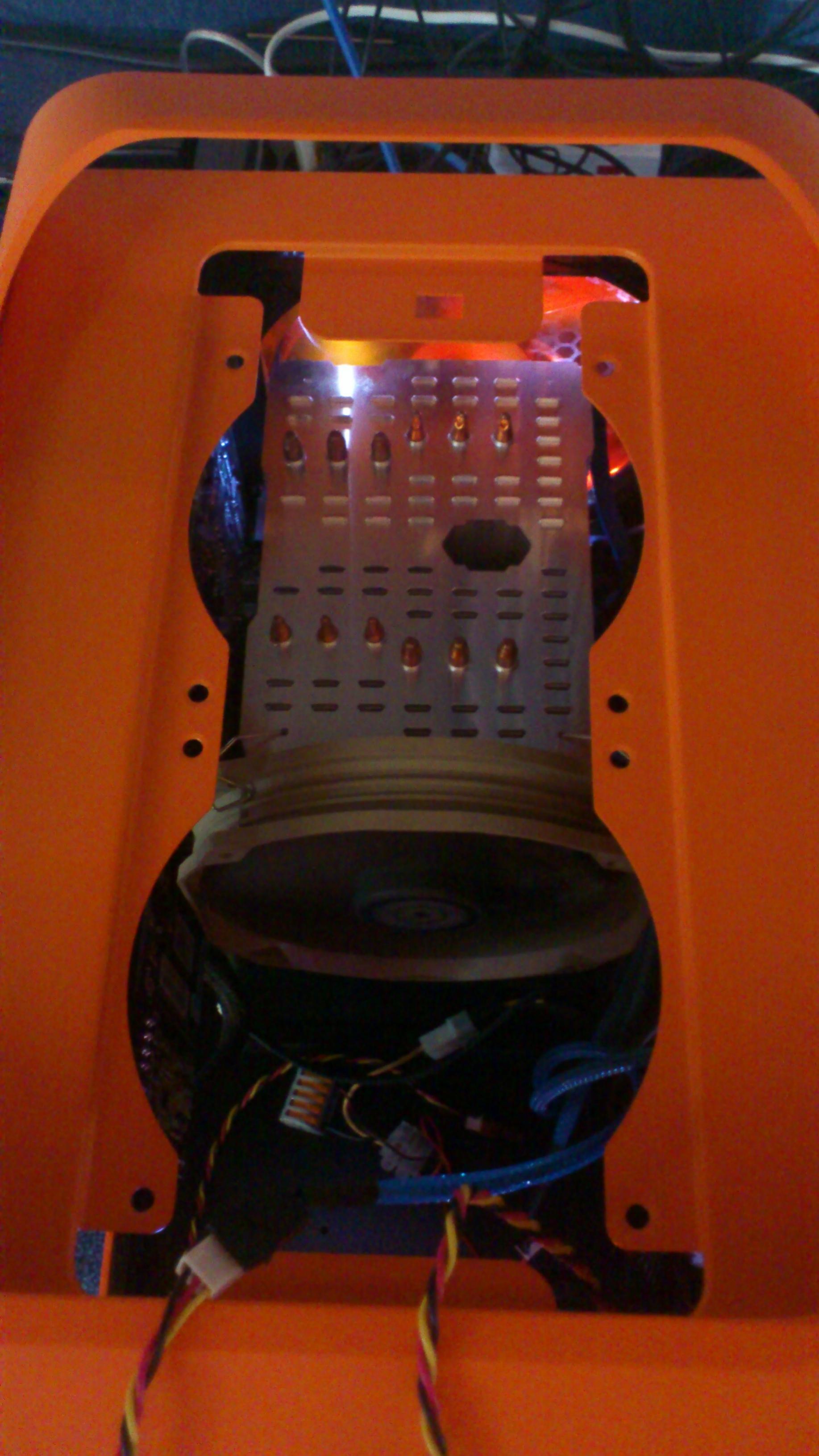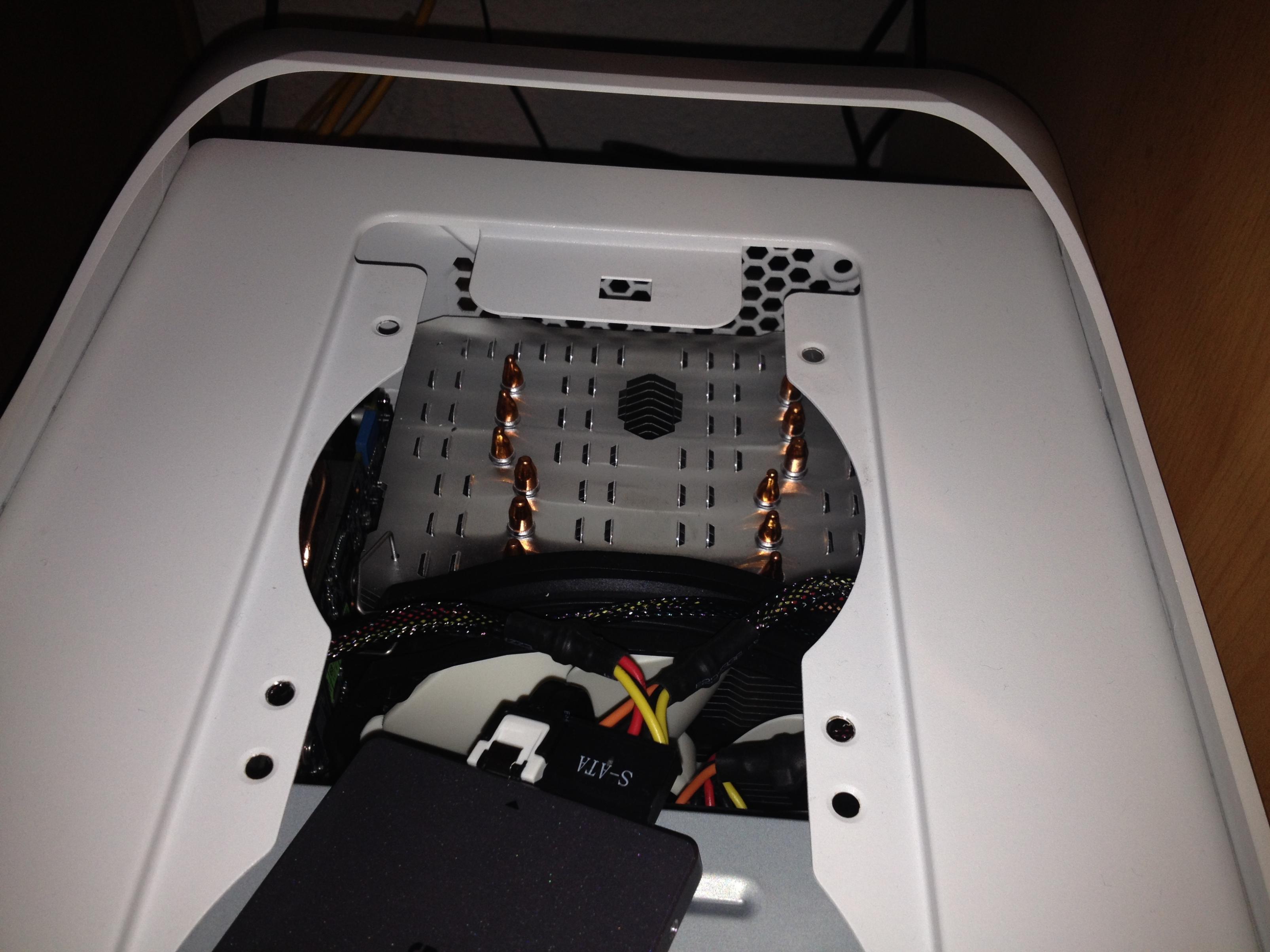 Hinten bläst einer der Bitfenix Lüfter raus und einer im Deckel. BR-Laufwerk ist installiert.