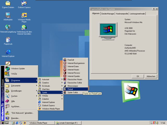 Win Me sieht übrigens, trotz des komplett anderen Unterbaus, nicht nur zufällig fast genauso aus wie Windows 2000. Schließlich musste es damals kurzfristig als Ersatz für die eingestampfte Home-Version von Win2K einspringen.