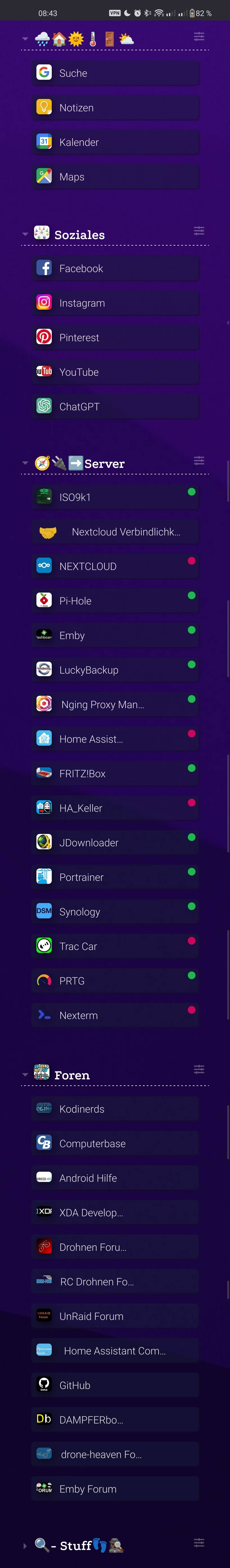 Interessant wäre es auch wenn ich hier dann zB auch bei diversen Links Infos mit einfügen kann zB bei | Pihole was heute geblockt wurde | bei der Fritzbox monatlicher Traffic | beim Unraidserver ob es Nachrichten gibt | .......