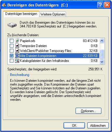Meiner MEinung nach lohnt sich das mit dem Komprimieren aber nicht. Die Kompressionsrate ist dermaßen schlecht, dass man da kaum mehr Kapazität bekommt.