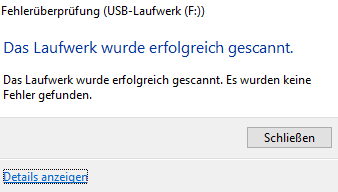 4. Fehlerüberprüfung über die Eigenschaften des USB-Sticks: alles ok