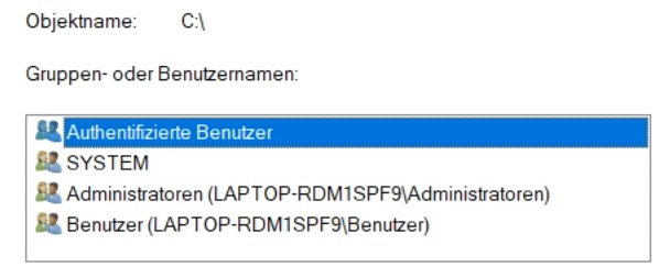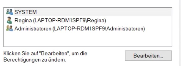 Dann habe ich mir die Berechtigungen dieser Ordner in den Eigenschaften angeschaut. Hier fehlten die Haken bei "Vollzugriff" und "Ändern". Allerdings bekomme ich eine Fehlermeldung, wenn ich diese setze und dann speichern möchte:
