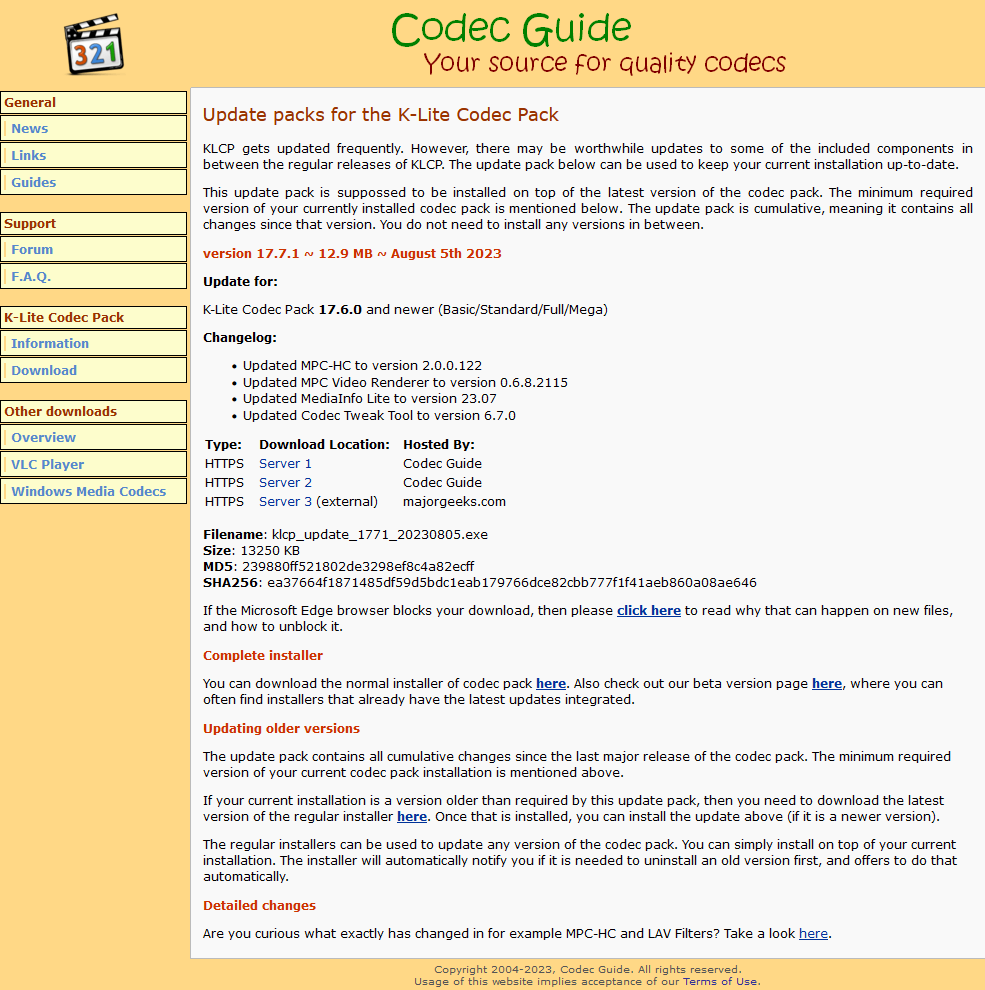 - Video: x264, x265, xvid, divx, mpeg2, av1