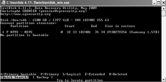 Tastende Versuche mitTestdisk, siehe Anhänge: