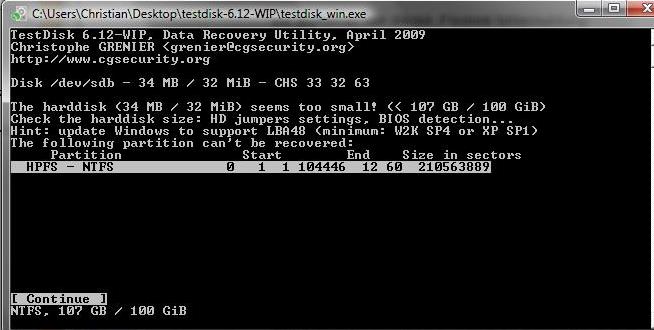 Wenn deine Festplatte voll erkannt wird und noch eine Diagnose nötig ist, geht es mit Testdisk weiter.