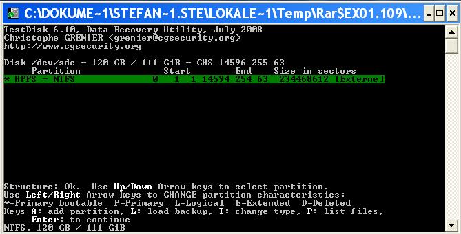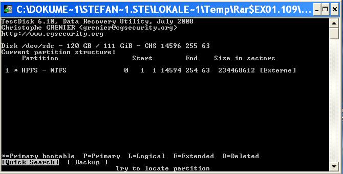 Achso, wenn ich das richtig verstehe arbeitet Testdisk erst einmal virtuell und verändert erst BS/MFT/etc. wenn man auf write geht?
