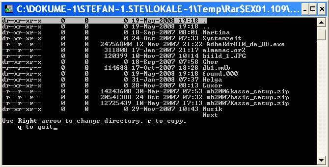 Hast Du mal probiert im letzten Screen mit der Cursor-Tasten in das Verzeichnis zu wechseln und per c (copy files) zu kopieren?