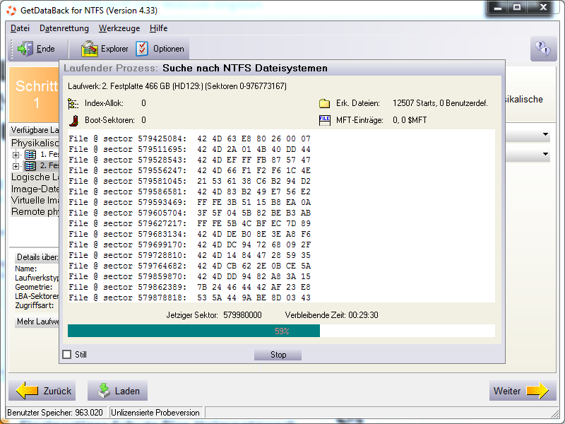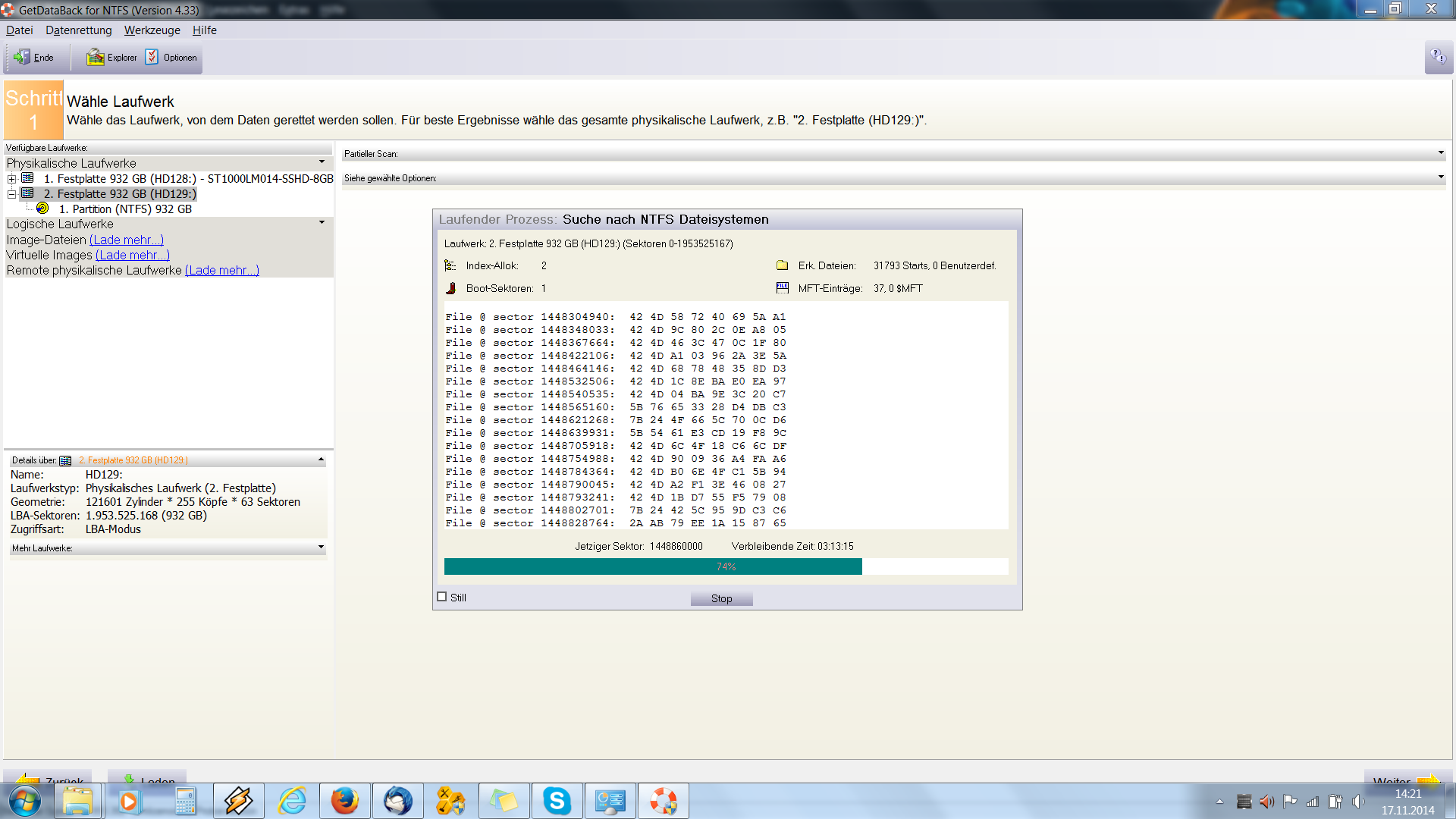Ich habe bisher TestDisk ausprobiert, File Scavenger... R-Studio.... aber vielleicht habe ich eben Mangels Kenntniss der Vorgehensweise einige Sachen nicht in der richtigen Reihenfolge vorgenommen oder eben etwas vergessen, daher bitte ich um euren Rat.