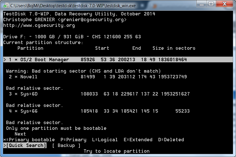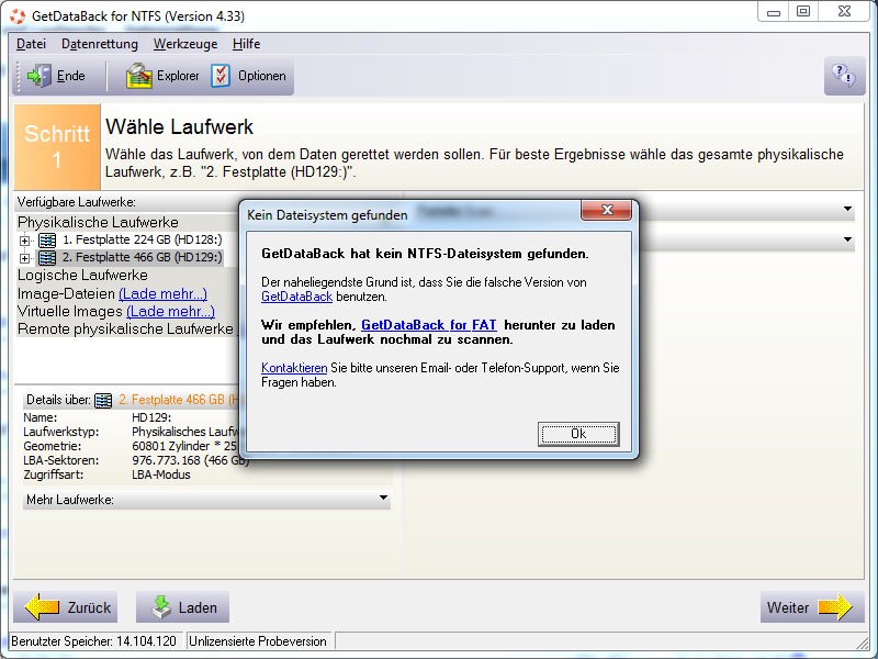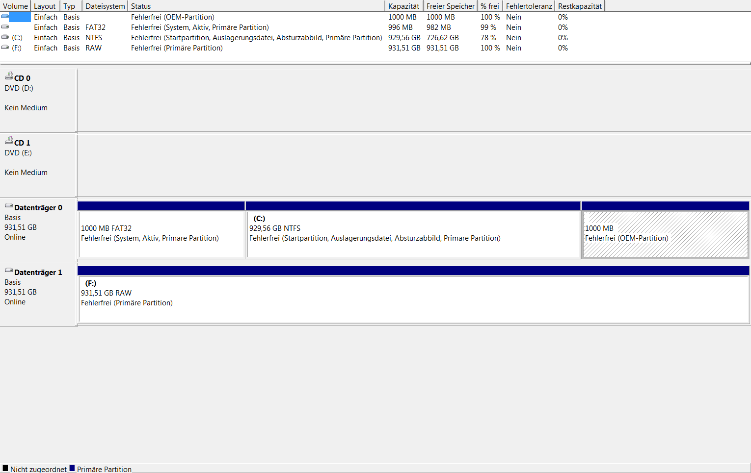 Die 1 TB Platte habe ich ausgebaut, hängt in nem Gehäuse für ext. HDD an meinem Laptop... gleiche Symptome wie oben.