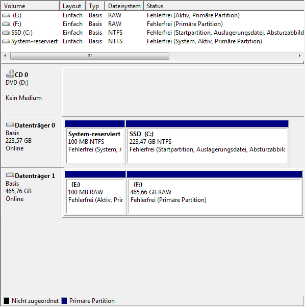 Im Tower ist ne neue HDD mit Win7, die 500 GB Platte hängt dort drin, wird im BIOS und Windows angezeigt, aber kein Zugriff (Dateisystem korrupt).
