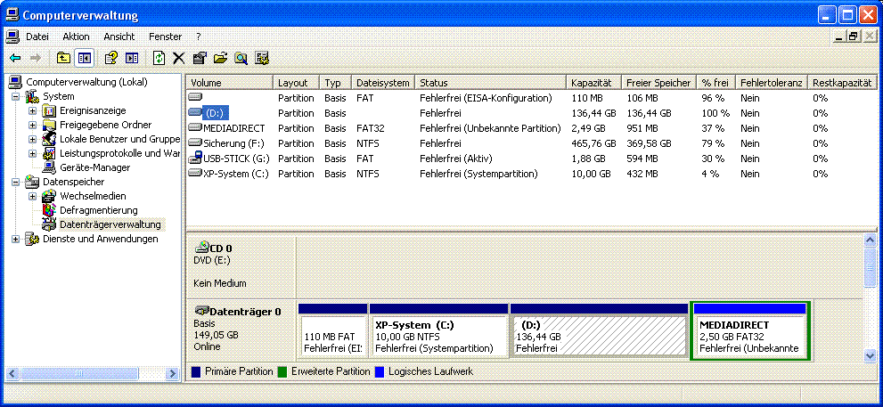 Bei anderen Tools scheint es auch immer bis zu genau dieser Stelle zu gehen... chkdsk und Bootrec.exe /FixMbr Habe ich auch bereits versucht. Auch PC Inspector File Recovery. Dieses Tool erkennt allerdings nicht wirklich die scheinbar noch auf dem nicht formatierten Bereich(aktuell wieder bekanntals D) keine Daten.... Ich habe dem benannten Bereich bereits den Laufwerksbuchstaben D gegeben, allerdings nicht formatiert, will ja nicht die alten Daten überschreiben...