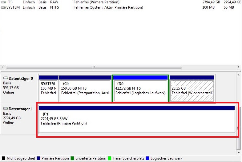 Bin gerade nach Hause gekommen, und habe die Datenträgerverwaltung aufgerufen. Nun wird die Festplatte als RAW angezeigt und ich kann nicht mehr darauf zugreifen (Hätte mal meine Klappe halten sollen). Die Daten sind mir natürlich nicht egal, ich bin mir aber auch nicht sicher, wieviel ich davon auf anderen Festplatten habe, da mir vor kurzem mein Desktop PC abgeraucht ist und ich dabei erstmal Dateien auf genau DIESER Festplatte gesichert hatte. Im Moment ist der Wurm drin