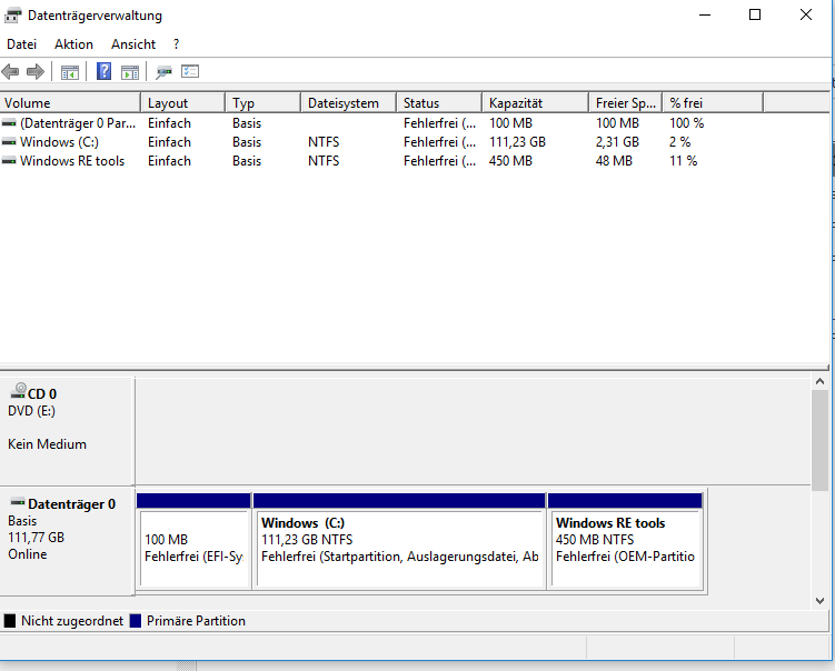 Die fehlende Festplatte, die jetzt weg ist der Datenträger 2. Die andere Festplatte von der ich am Anfang sprach habe ich ausgebaut. Auf die braucht ihr keinen Bezug nehmen