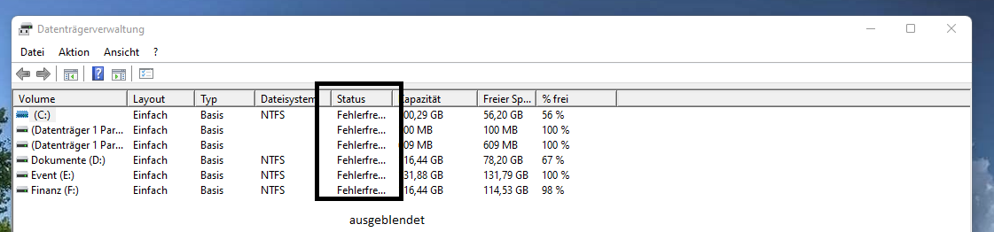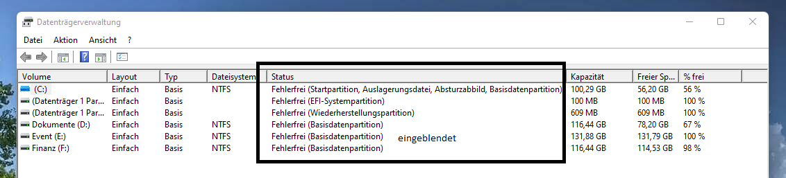 - anbei ein Screen aus der Datenträgerverwaltung, dort kann ich bei I: keinen Hinweis auf 'System' erkennen
