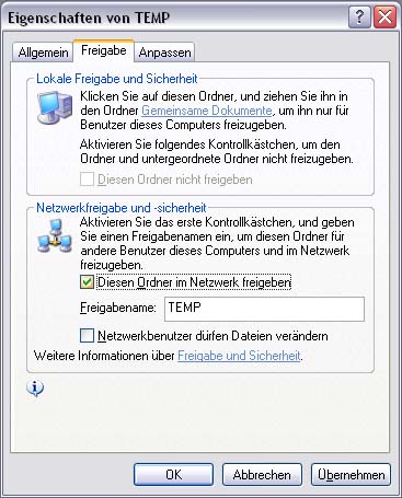 Nicht unbedingt. Es ginge auch über Benutzer bzw. Gruppenrechte. Dazu müßten die Benutzer bzw. Gruppen aber bei Dir angelegt sein. Oder liege ich da komplett falsch? Sind XP-Home und XP-Prof da unterschiedlich?User1024 schrieb:Um einzelne Dateien aus verschiedenen Ordnern freizugeben, bräuchtest du ein FTP-Server-Programm.