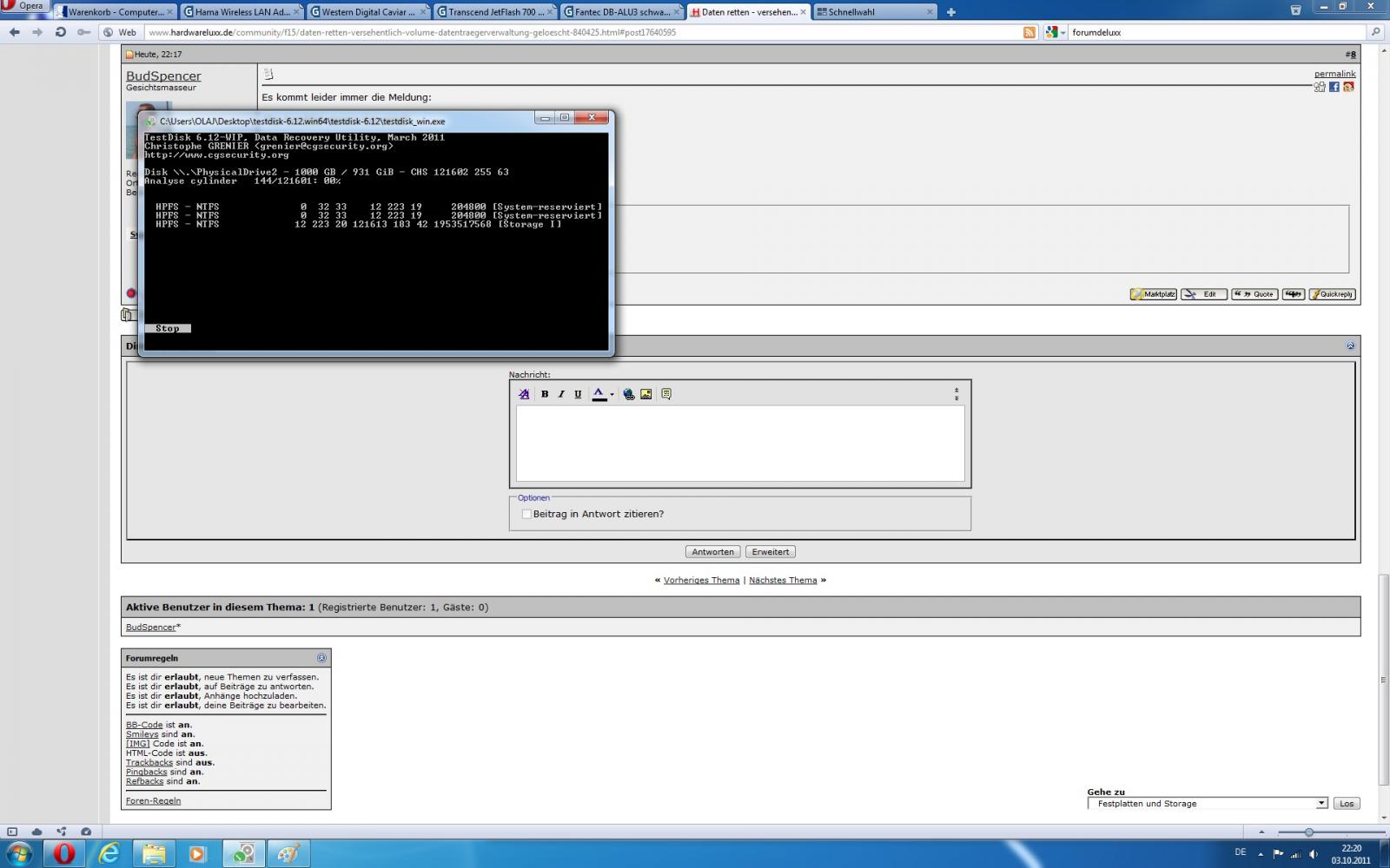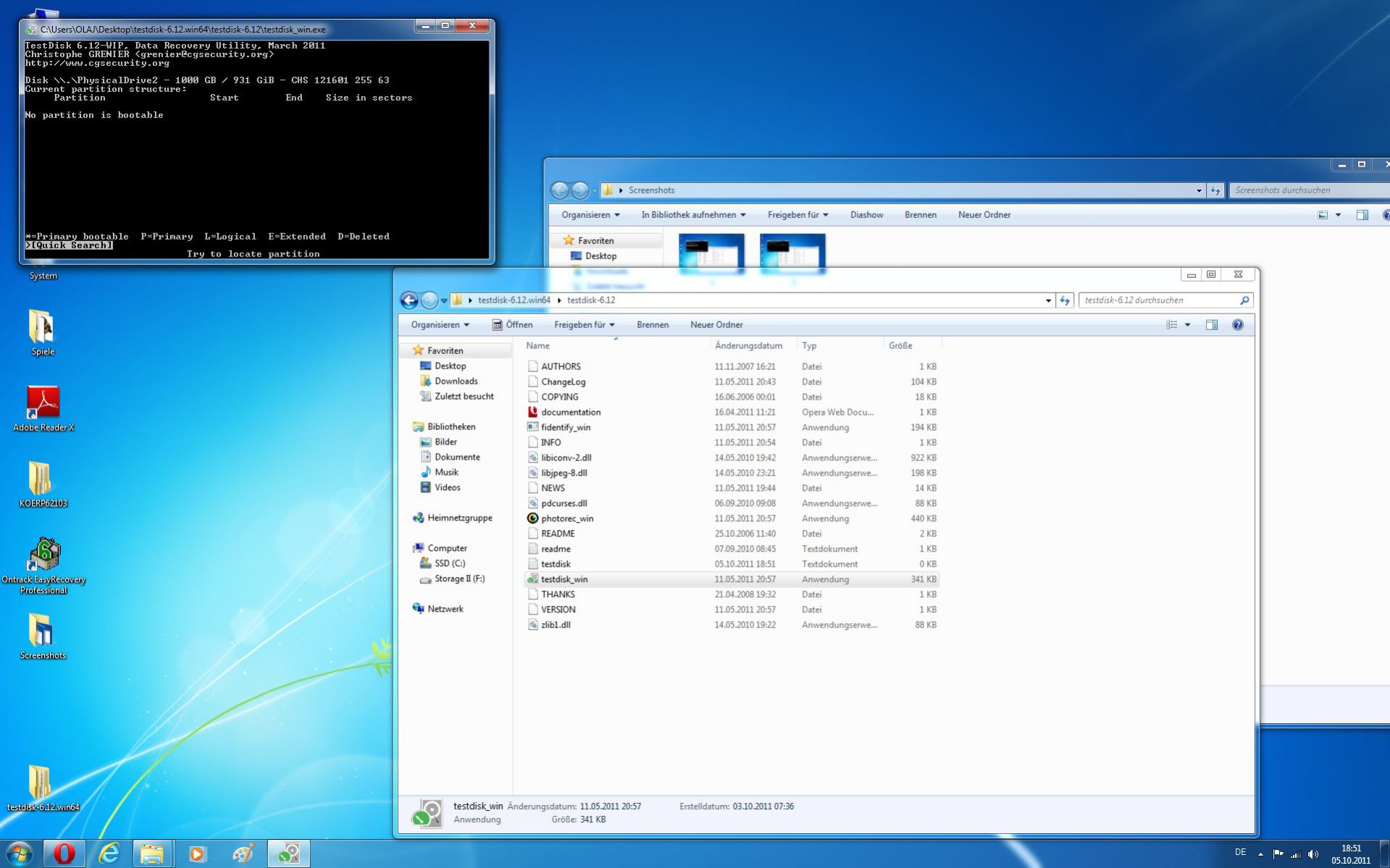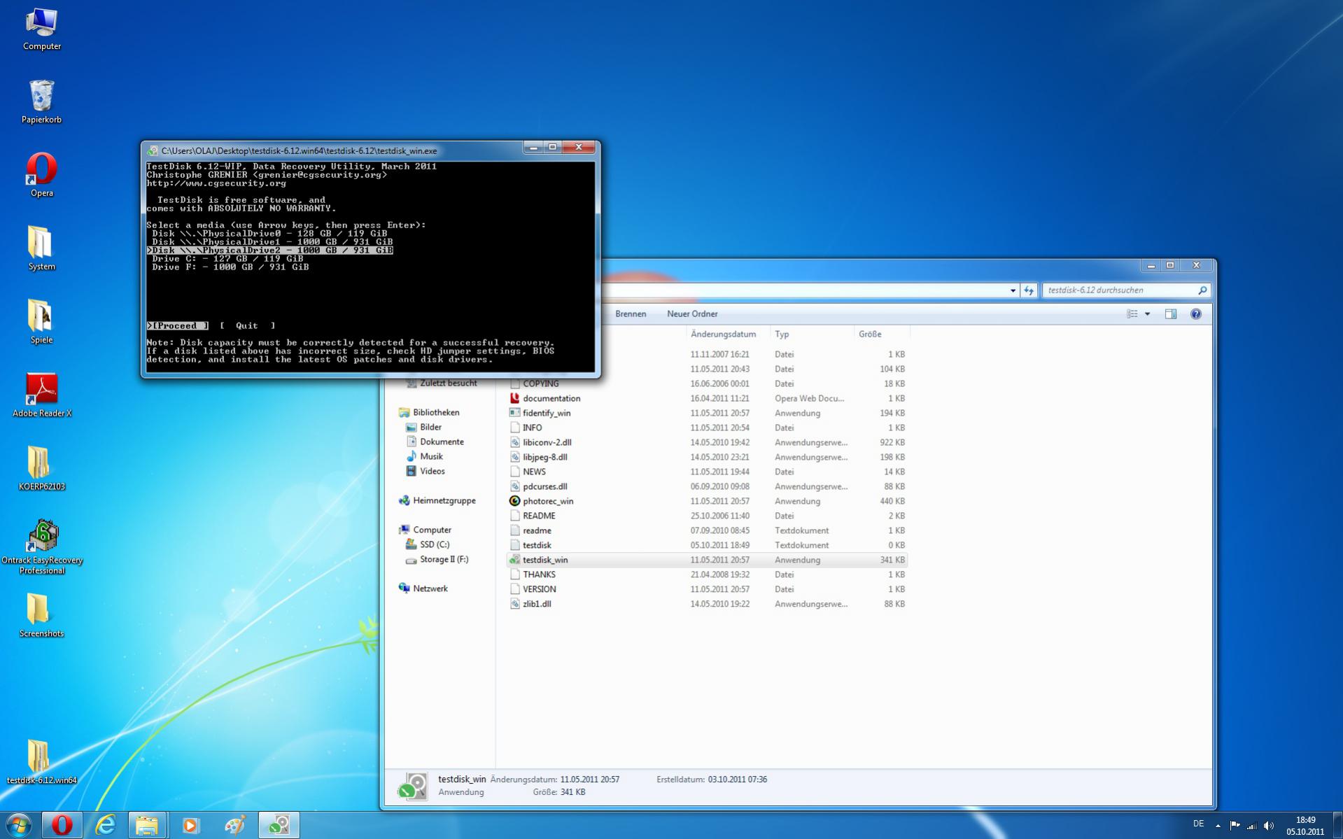Nach einigem Einlesen bin ich auf das Programm Test Disk gestoßen. und habe auch hier im Forum die FAQ diesbezüglich gelesen.