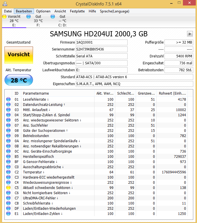 eYc schrieb:Hast du die aktuell noch laufen? Haben sich die SMART-Werte verschlechtert, oder ist da alles "stabil"?