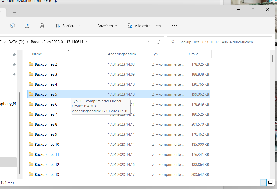 ich habe ein Backup auf eine mit exFat formatierte Festplatte gemacht. Ich habe versucht die Daten auf "D" ausgelagert,