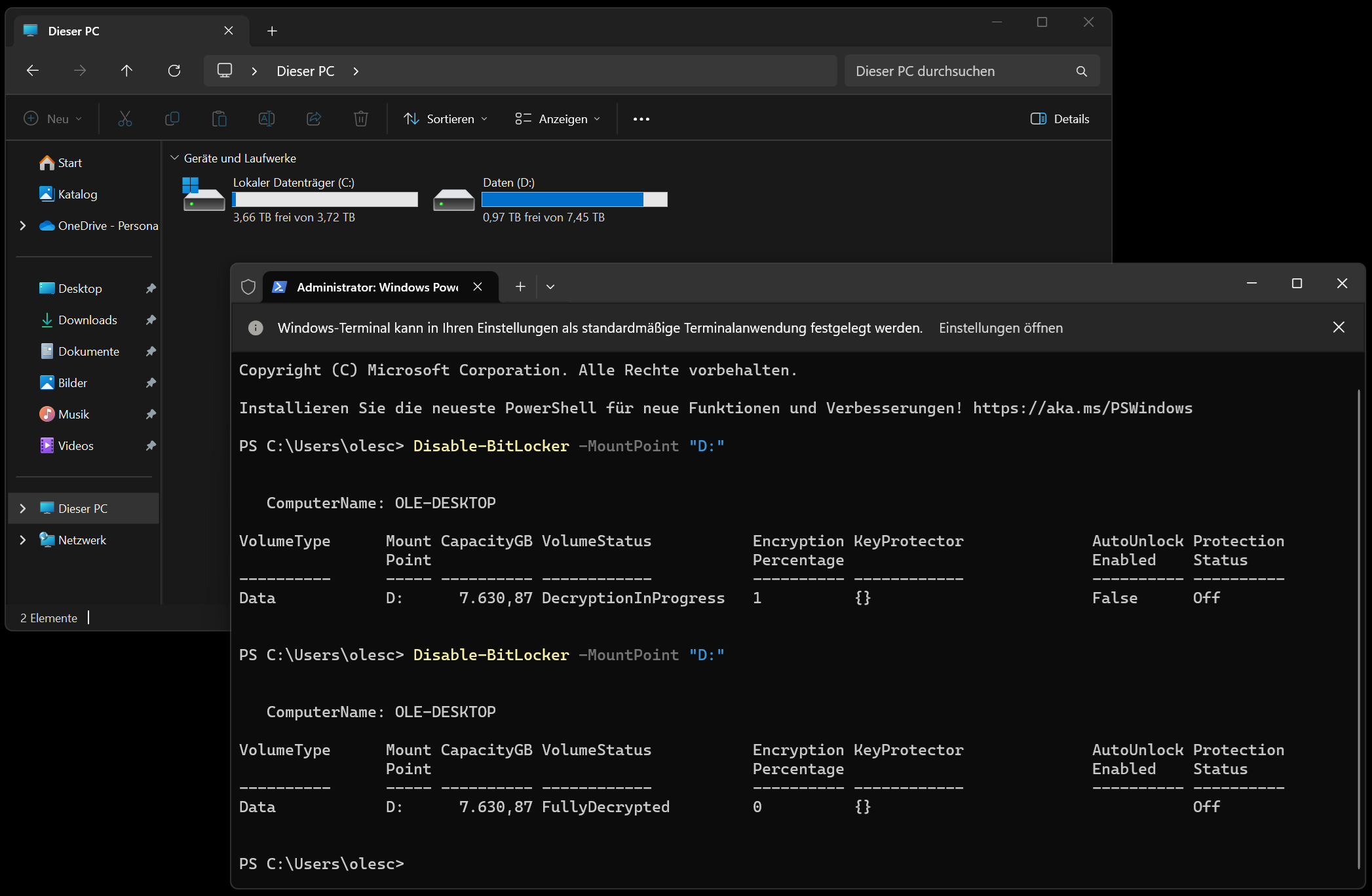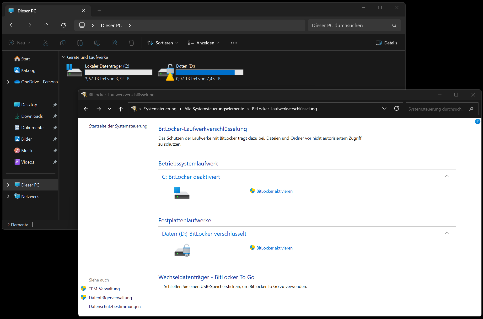 Wobei ich bisher auch nicht davon ausgegangen bin, dass zusätzliche Datenlaufwerke automatisch verschlüsselt werden. Normalerweise betraf das nur die Systempartition.