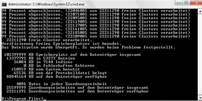 Scanne die Partition indem du auf das