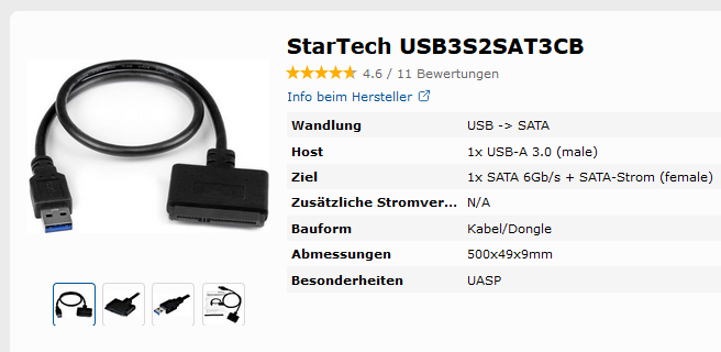Seit knapp zwei Jahren habe ich an meinem Laptop eine Externe Festplatte aus mein alten Rechner.