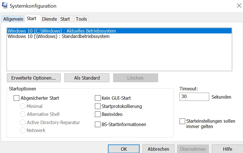 Der Witz ist - nachdem ich auf den Laptop Windows 10 neu installiert habe, muss ich zwischen Windows 10 und Windows 10 Volume 1 wählen. Entscheide ich mich für Windows dann geht