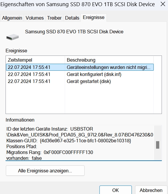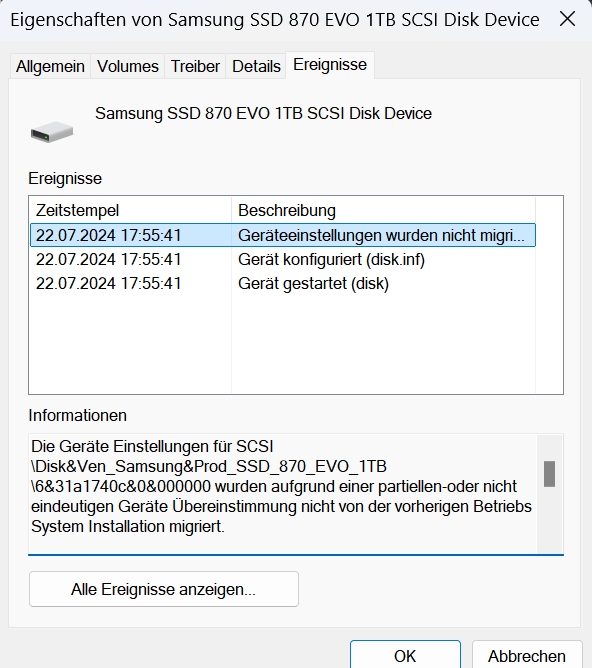 Da wird die alte SSD wohl auch einen Schaden haben.