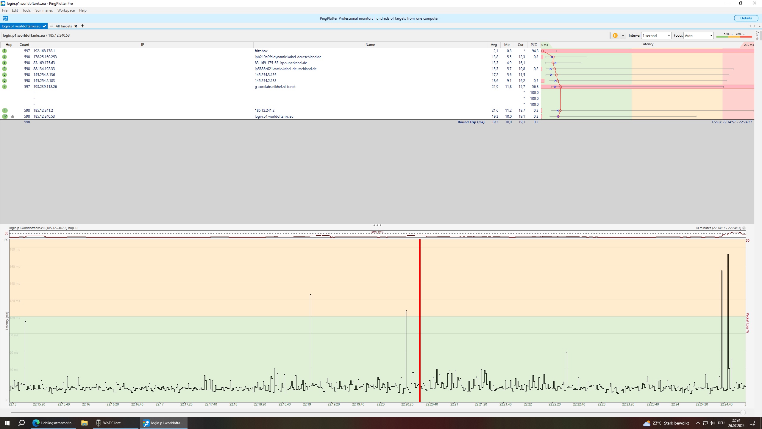 ich habe/hatte Probleme mit Paketverlusten bei World of Tanks. Als Antwort vom Support bekam ich, dass ich doch bitte Ping Plotterberichte einreichen solle. Ich hatte an sich nur bei World of Tanks Probleme. Naja am Ende wandte ich mich an Vodafone und die schickten einen Techniker vorbei. Nun sagt PingPlotter auf einmal, dass ich sogar bis zu 80% Paketverlust zu meiner eigenen Fritz Box hätte. Das kann doch an sich gar nicht sein, dann hätte ich ja quasi keine Verbindung. Bevor der Techniker da war, wurde das nicht so angezeigt, also hat sich ja irgendetwas verändert, nur nicht die ursprüngliche Thematik mit dem Paketverlust in World of Tanks.