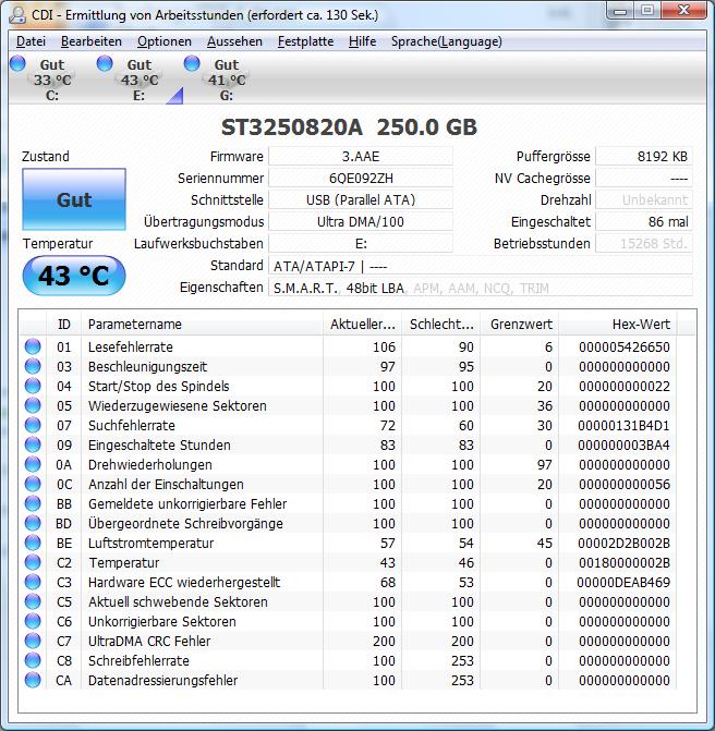 Ich habe eine Trekstore USB Festplatte als Datensicherung ( 250 GB).