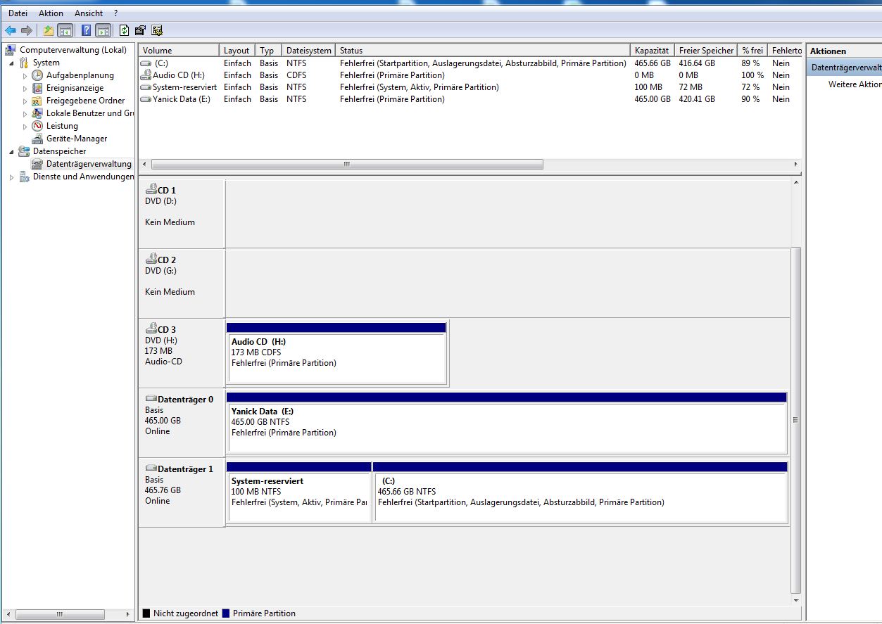 Zur Vorgeschichte: Ich habe einen neuen Computer, mit 3 Disken à je 500 GB. eine für das Windows 7 Professional 64 Bit die anderen 2 als Raid für die Daten.