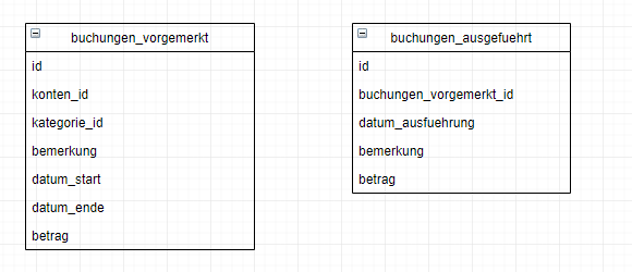 Dazu habe ich die Tabellen 'buchungen_vorgemerkt' sowie 'buchungen_ausgefuehrt'