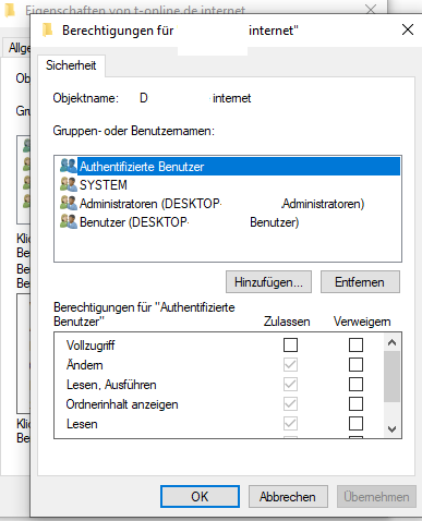 Du kannst in den Ordnereigenschaften im Reiter "Sicherheit" bestimmten Accounts die Zugriffsrechte entziehen: