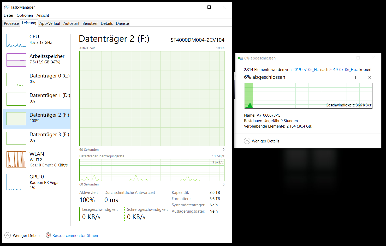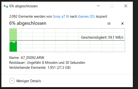 P.S. ich habe heute bereits von 16:30 bis 20:30 Uhr Daten kopieren wollen und in der Zeit konnte ich gerade einmal 30 GB kopieren.