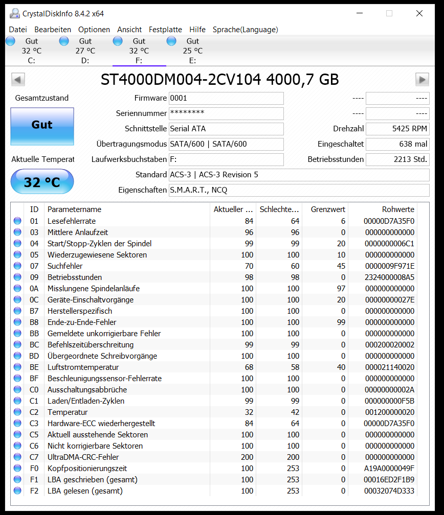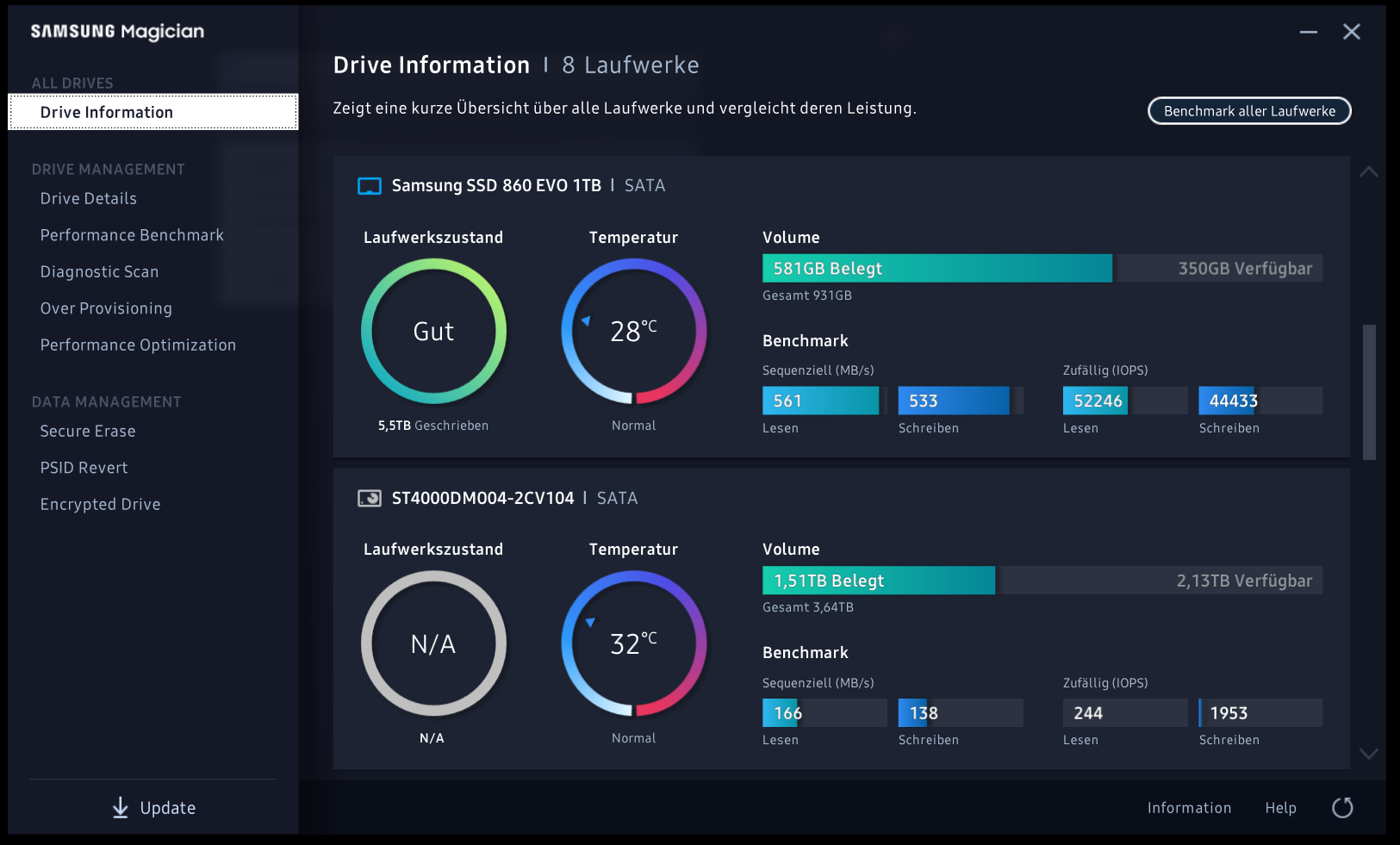 Ich habe zusätzlich die Auszüge von CrystalDiskInfo hinzugepackt.