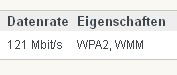 darunter wird mein wlan angezeigt (logisch) aber bei der datenrate ist mir was aufgefallen die ändert sich öfters mal . mal steht sie auf 150 mbit/s...jetzt steht sie auf 108 mbit/s und vorhin war sie sogar auf 89 mbit/s.