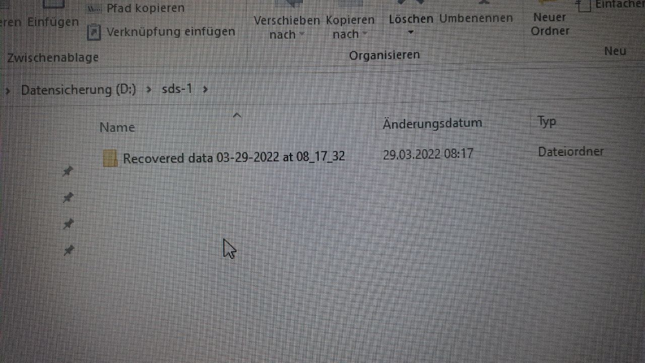 ich hab auf dem Ersatzdatenträger, 3 Ordner (eigentlich 4, keine Ahnung was der NAS Ordner ist, hatte den Datenträger vorher formatiert), in einem wurden bereits am 29.03.22 irgendwelche RAW Dateien gespeichert.... , dann gibt es einen 2. Ordner vom 14.07.22 der stammt vermutlich von dem abgebrochen Kopiervorgang, da gibt es nur einen Ordner "Bilder", da ist aber nix drin und dann gibt es einen 3. Ordner, der war zunächst leer, als ich ihn gestern hier mal am Arbeits-PC angestöpselt habe.