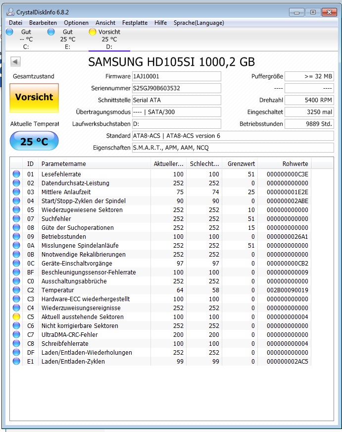 Es handelt sich um eine SAMSUNG HD105SI, 1 TB Serial ATA