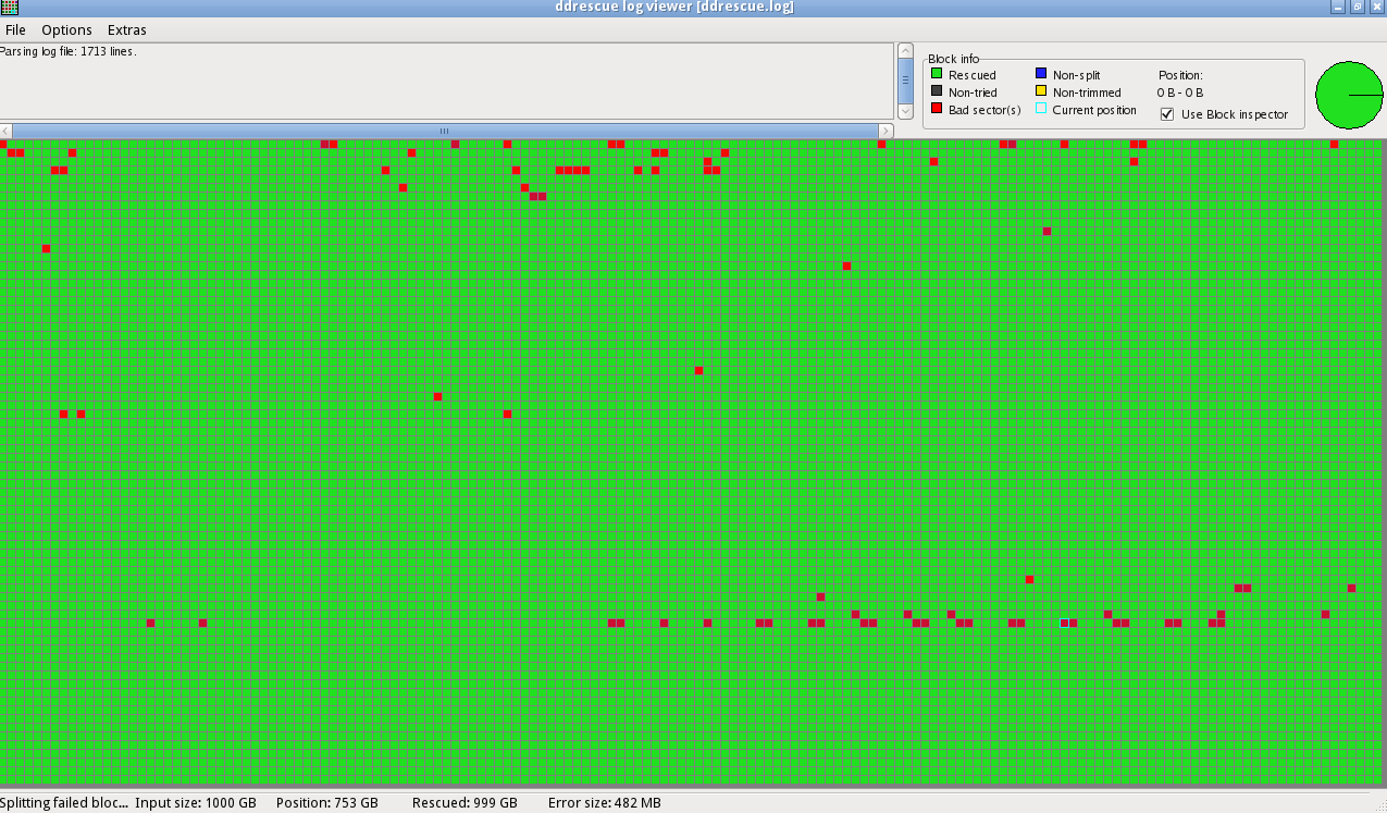 Daneben waers noch super, falls ihr eine Meinung zum Grad der Schaedigung geben koennt, laesst sich mit dem logfile bzw. deren grafischen Darstellung sagen, wie es um das Laufwerk und deren Wiederherstellung steht..?