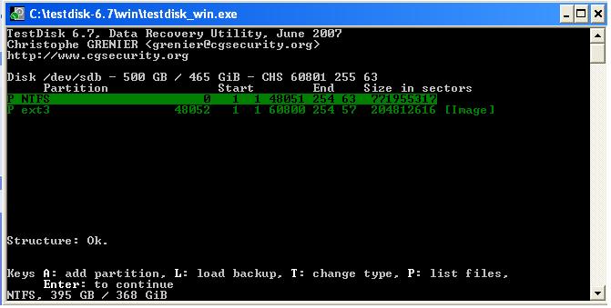 Nun habe ich die Platte ausgebaut und an direkt an einen Pc gehängt. Mit Test Disk habe ich nun die Platte auf Partionon analysiert und das ist dabei herausgekommen: