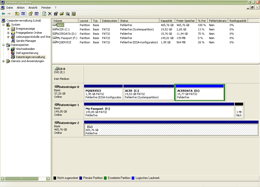 Gründe? Die Computerverwaltung schreibt mir unverändert "931,51 GB RAW Fehlerfrei (Primäre Partition)"