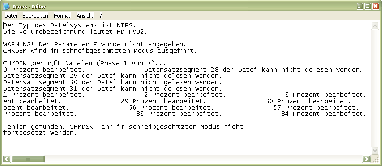 Irgendein HDD-Überprüfungsprogramm hat mir aber vor fünf Tagen gemeldet, dass die bewusste IOMEGA