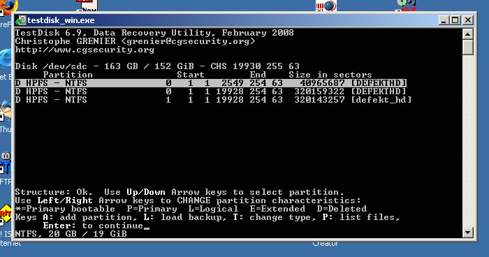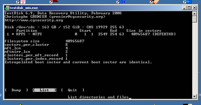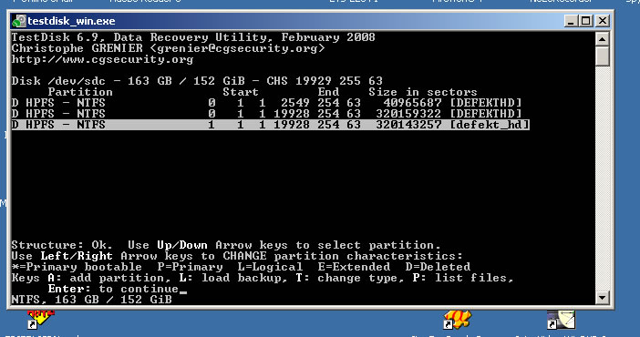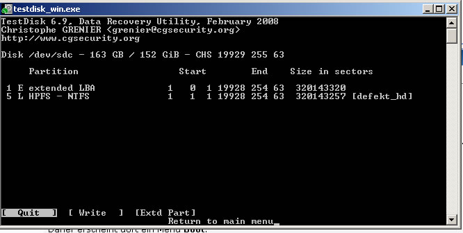 Damals kannte ich Testdisk noch nicht. Somit wurde die Platte mit Datenrettungssoftware von OnTrack und PC Inspector gescannt. Es wurden Daten gefunden und wiederhergestellt. Allerdings stimmen keine Dateinamen und Dateigrößen mehr. Dateien zu finden ist demnach eine sehr zeitaufwändige Arbeit. Ich habe jetzt also Testdisk probiert, komme allerdings nicht weiter.