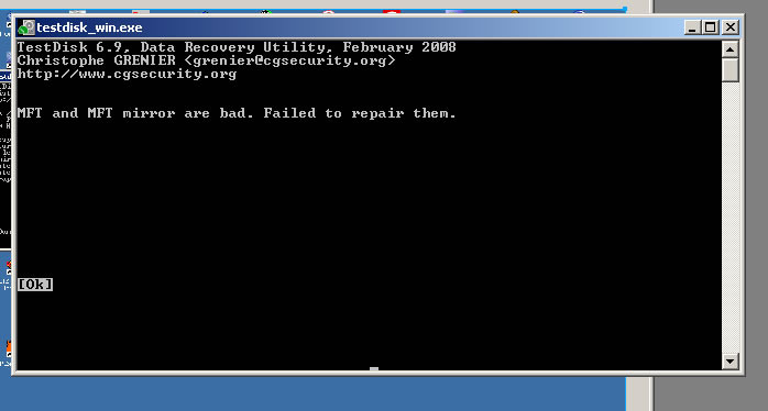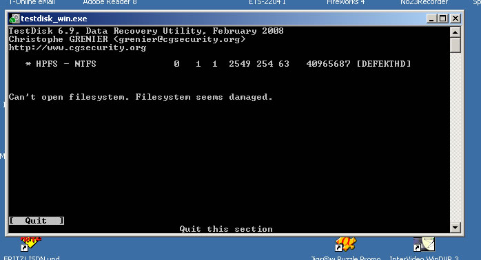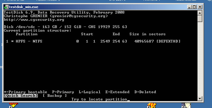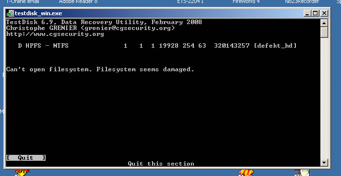 Nun habe ich noch eine ältere Platte, die mir ebenfalls keine Daten mehr anzeigen wollte (Meldung in Windows "....soll der Datenträger jetzt formatiert werden..." oder so).