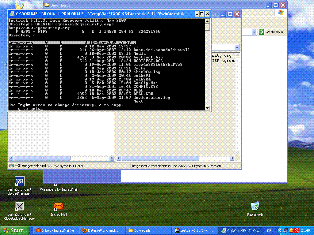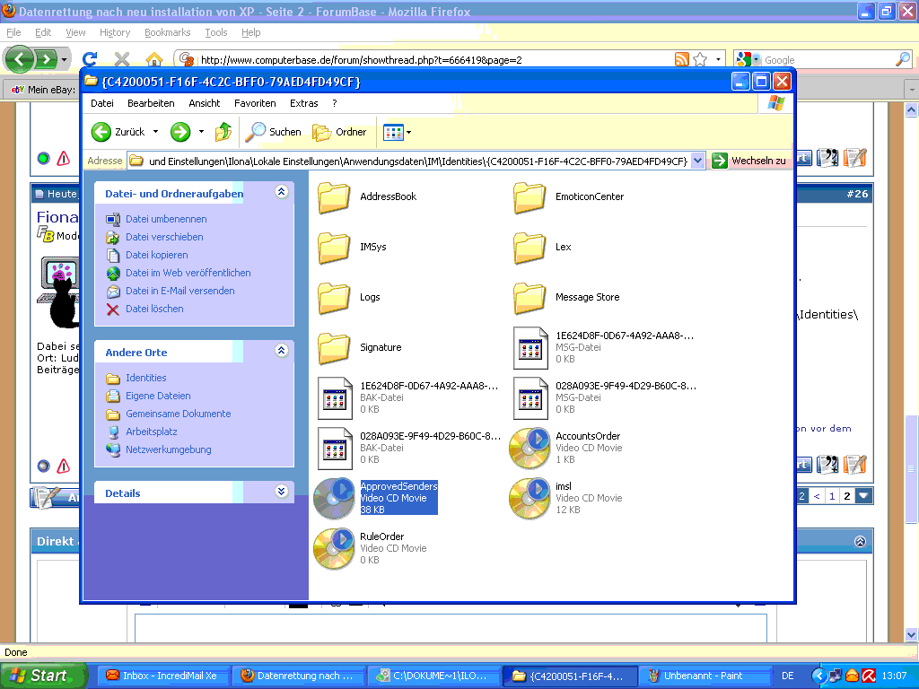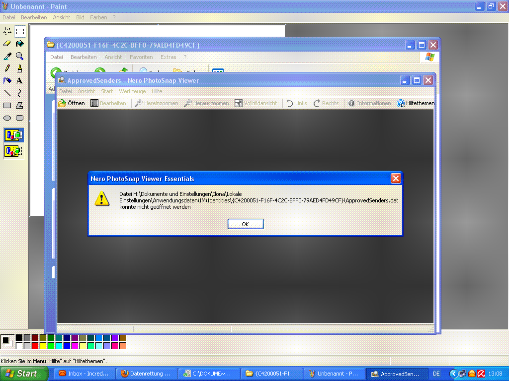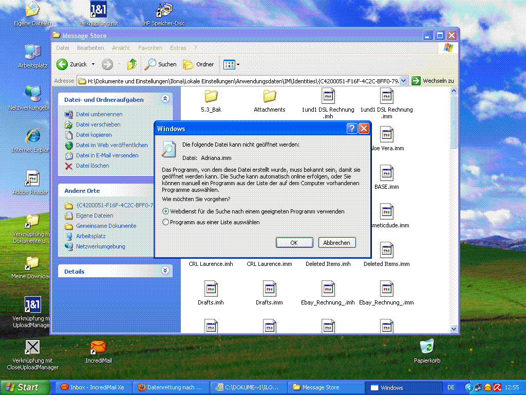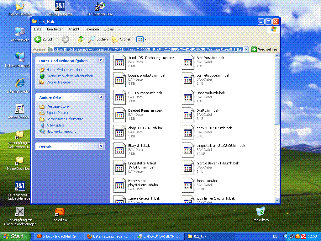 Die anderen Bilder sind die von der suche nach meine mails(incredimail) kann die Dateien nicht öffnen.